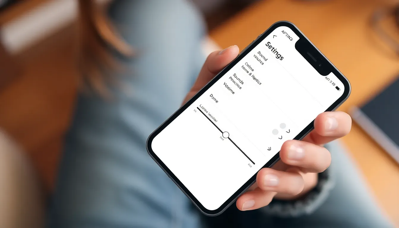 Access the iPhone settings by tapping the gear icon. Scroll down to Sounds & Haptics and select it. In this menu, the Ringer and Alerts section allows volume adjustments. Users can drag the slider left to lower the volume. For a more precise setting, enable the Change with Buttons option. This feature makes it easier to adjust the ringer and alert volumes quickly.